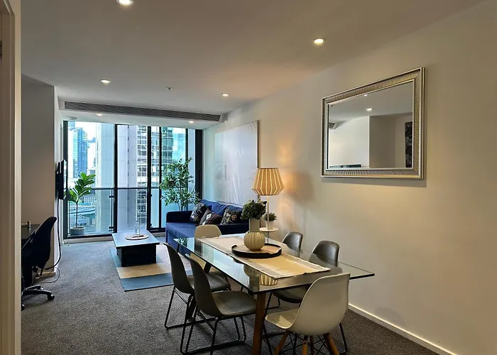 Con instalaciones de spa como una piscina cubierta, Apartamento Southbank Grand Retreat está situado a una distancia de 1 km de la Galería Nacional de Victoria. Este apartamento ofrece alojamiento en el distrito central de negocios de Melbourne, a poca distancia del Edificio del Antiguo Tesoro.
